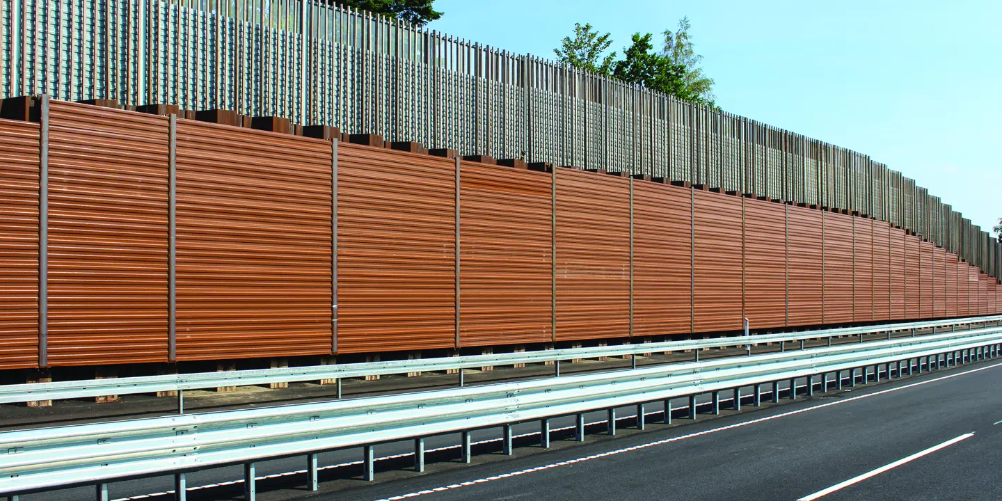 En enkelt absorberende støjskærm er ideel, hvis man ønsker at skærme et boligområde, der ligger ud til en stærkt trafikeret vej. En enkelt absorberende støjskærm er ideel, hvis man ønsker at skærme et boligområde, der ligger ud til en stærkt trafikeret vej. |